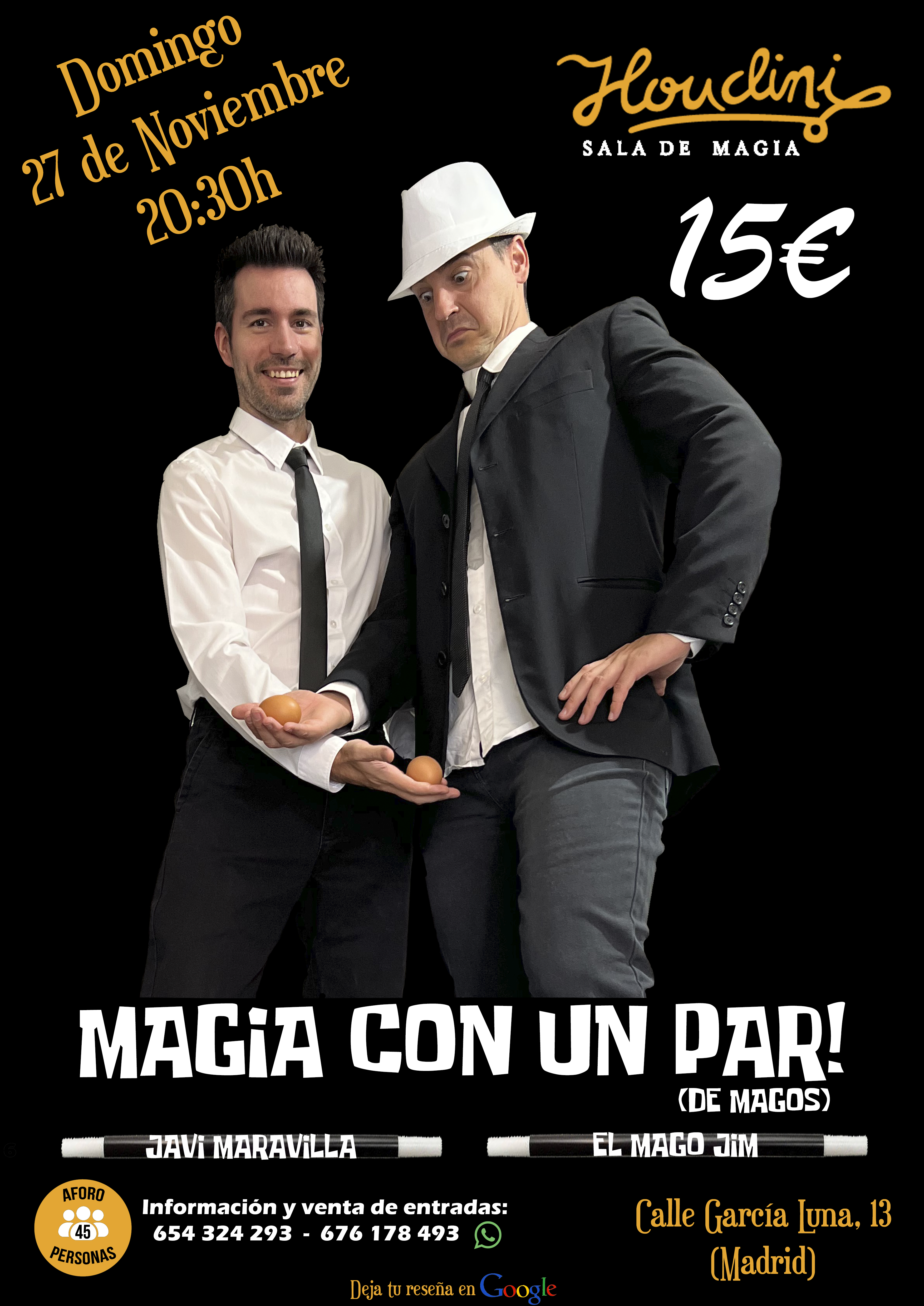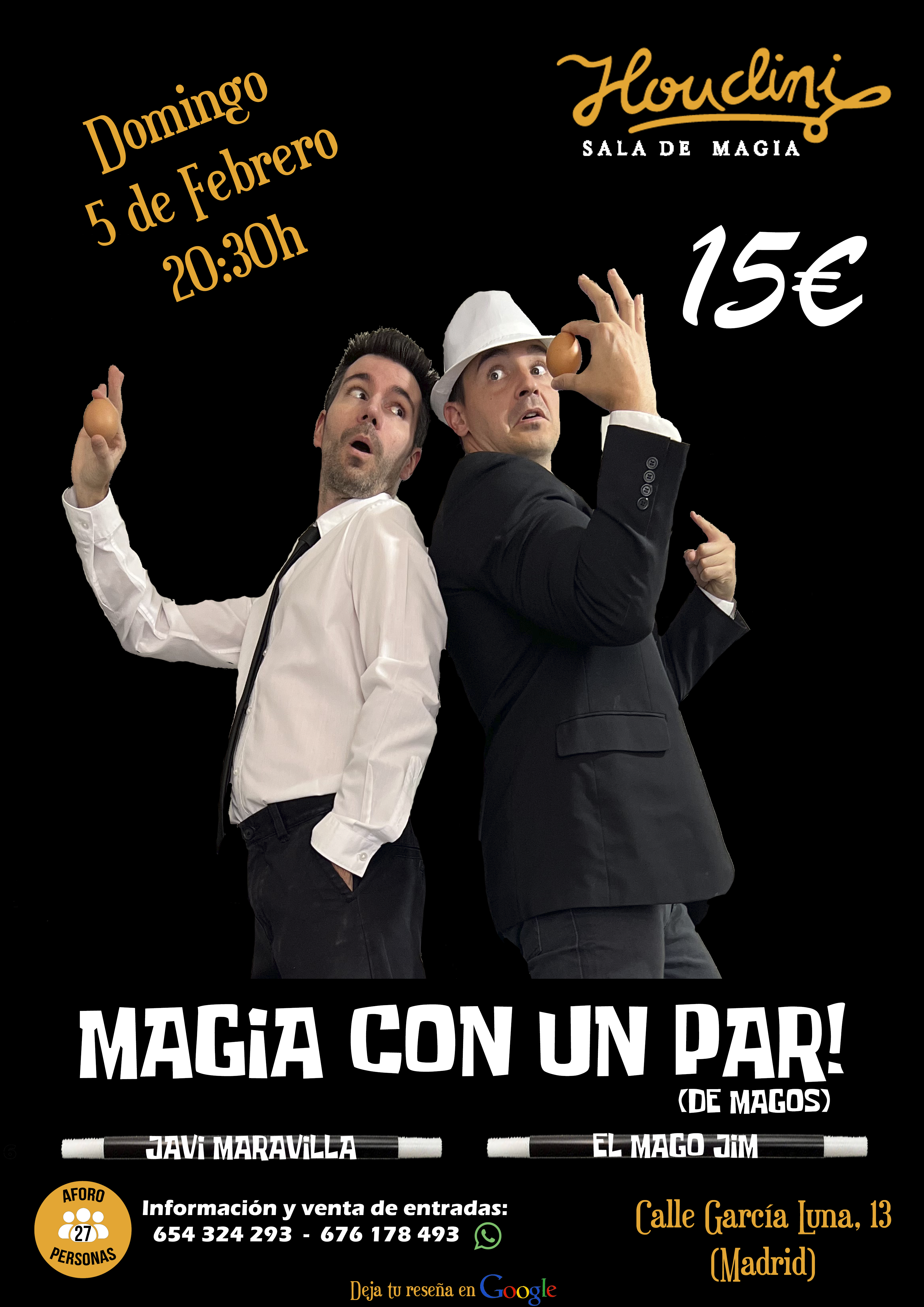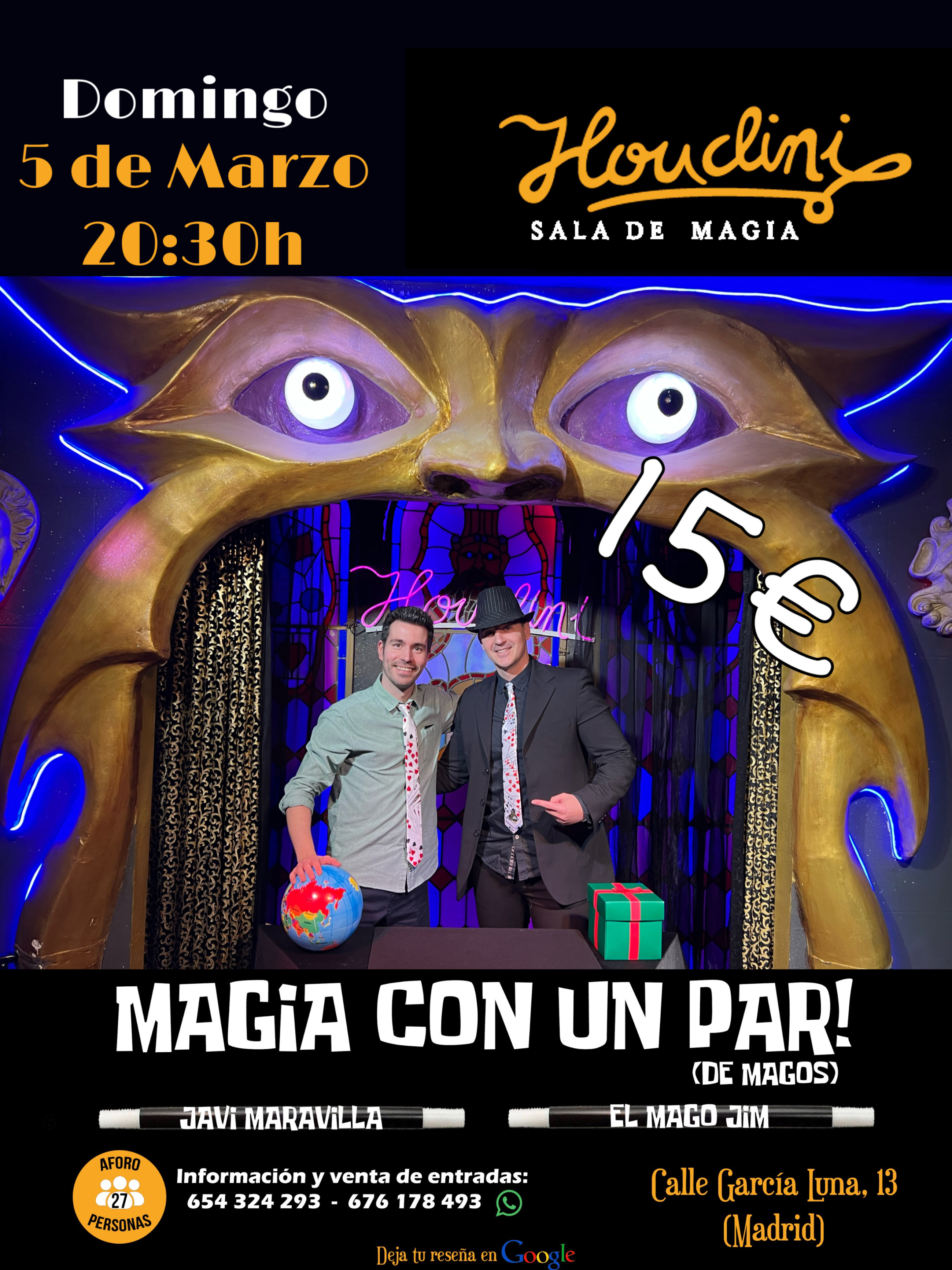 EL 5 DE MARZO VOLVEMOS A LA SALA HOUDINI CON MAGIA CON UN PAR !!!!
